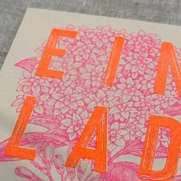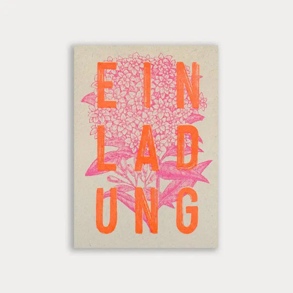 Einladungskarten-Set von Ava & Yves, 6 Karten mit Umschlägen im Streifen-Design Orange/Rosa, verpackt in transparenter Hülle."