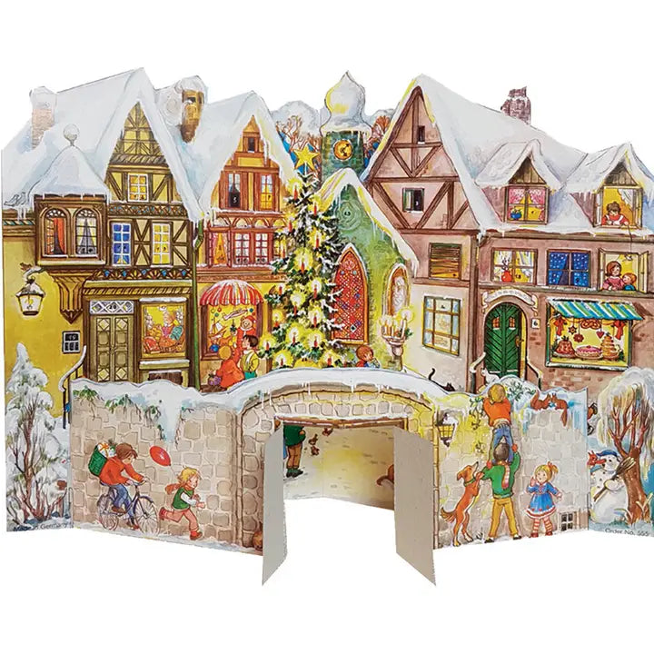 Dieser nostalgische Adventskalender zum Aufstellen verwandelt dein Zuhause in eine kleine Weihnachtsstadt: vorne die alte Stadtmauer mit Tor, dahinter ein festlicher Marktplatz, Baum, Pferdekutsche voller Geschenke, lauter Mini-Szenen zum Staunen. Jeden Tag öffnest du ein neues Türchen und entdeckst, was „hinter den Mauern“ passiert.