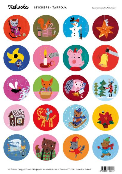 20 hübsch illustrierte runde Aufkleber auf einem Bogen