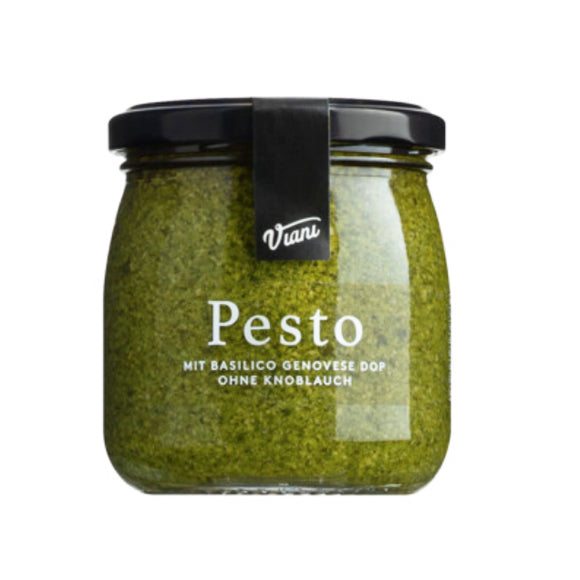 Entdecke das Pesto Genueser Art ohne Knoblauch von Viani und genieße den authentischen Geschmack Italiens. Mit hochwertigem ligurischem Basilikum, bestem Olivenöl und frischem Parmesan sorgt dieses Pesto für einen milden, aber intensiven Geschmack, ganz ohne Knoblauch. Es passt perfekt zu Pasta, als Brotaufstrich oder zum Verfeinern deiner Lieblingsgerichte. Der frische, aromatische Basilikumgeschmack macht jedes Gericht zu einem besonderen Genuss – ganz ohne den intensiven Knoblauchgeschmack. Hol dir jetzt dieses Pesto und erlebe ein Stück italienische Küche bei dir zu Hause.
