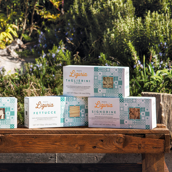 Pasta di Liguria ist eine authentische italienische Bio-Pasta, hergestellt von der Familie Minaglia in Montoggio, Ligurien. Seit über 30 Jahren produziert die Familie traditionelle Pastasorten, die die kulinarische Vielfalt der Region widerspiegeln. Dabei werden ausschließlich 100% zertifizierte italienische Bio-Zutaten und reines Quellwasser verwendet, ohne Zusatz von Farb- oder Aromastoffen. Die Pasta erzählt mit jedem Bissen die Geschichte der Menschen und der Landschaft Liguriens.