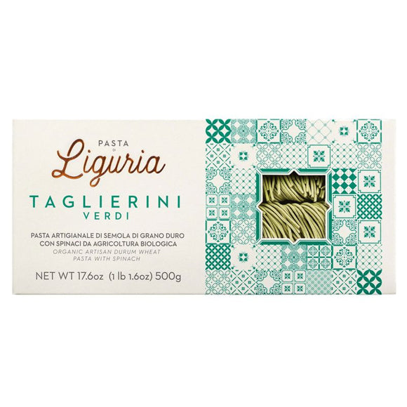 Die Taglierini Verdi von Pasta di Liguria sind eine traditionelle Spezialität aus dem ligurischen Hinterland. Gefertigt aus hochwertigem Bio-Hartweizengrieß und verfeinert mit Spinat, bestechen sie durch ihre hausgemachte Konsistenz und ihren feinen Geschmack. Die grüne Pasta harmoniert hervorragend mit cremigen Saucen, Käsesughi oder klassischen Rezepten wie dem Toccu Genovese. Auch in Kombination mit Fisch oder Meeresfrüchten entfalten die Taglierini ihren besonderen Charakter. Ein Stück ligurische Kulinarik für anspruchsvolle Genießer.
