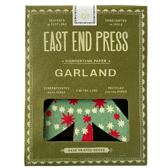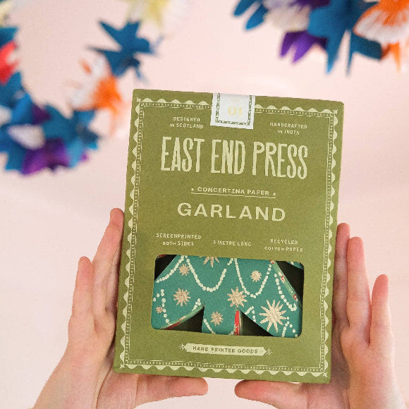 East End Press ist ein Design- und Druckstudio aus Glasgow. Das Label fertigt farbenfrohe Papierdeko, Karten und Homeware – von Hand im Siebdruck auf 100 % recycelter Baumwolle. Produziert wird seit 2018 mit Fair-Trade-Partnern in Jaipur; SEDEX-geprüft. Gegründet 2015.