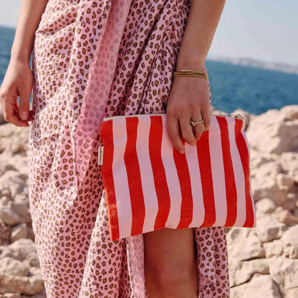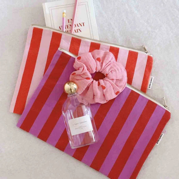 Etui - Lili Flat Pouch Stripes Tomato / Candy Pink
