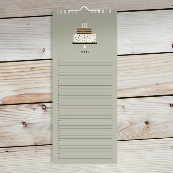 Dieser Geburtstagskalender hilft Ihnen, den Überblick über alle Geburtstage zu behalten. Hilft allen Familienmitgliedern zu feiern, zu singen oder ein Geschenk für das Jubiläum zu machen. Sie können den Kalender Jahr für Jahr behalten, da er nicht nur für dieses Jahr spezifisch ist. Jeder Monat hat eine grobe Illustration auf einem Hintergrund in Zitronengelb, rostiges Orange, Salbeigrün, warmgrau oder cremefarben. Perfekt zum Aufhängen neben dem Familienkalender!