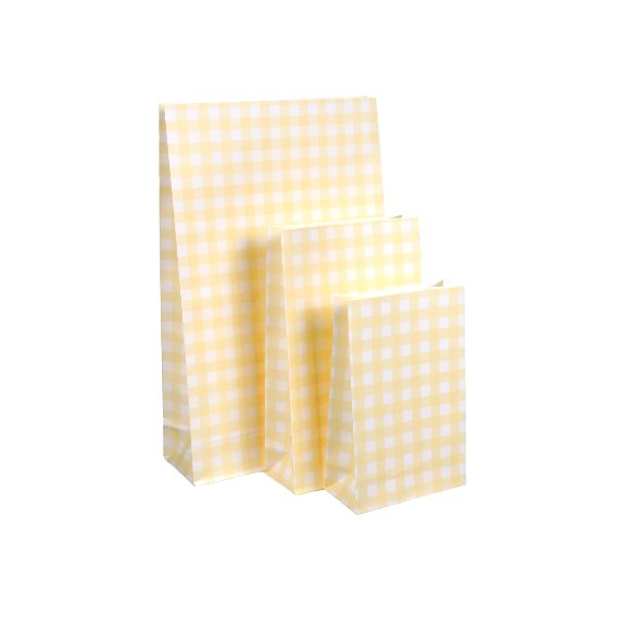 schöne karierte buttergelbe Papiertüten mit Boden zum Verpacken