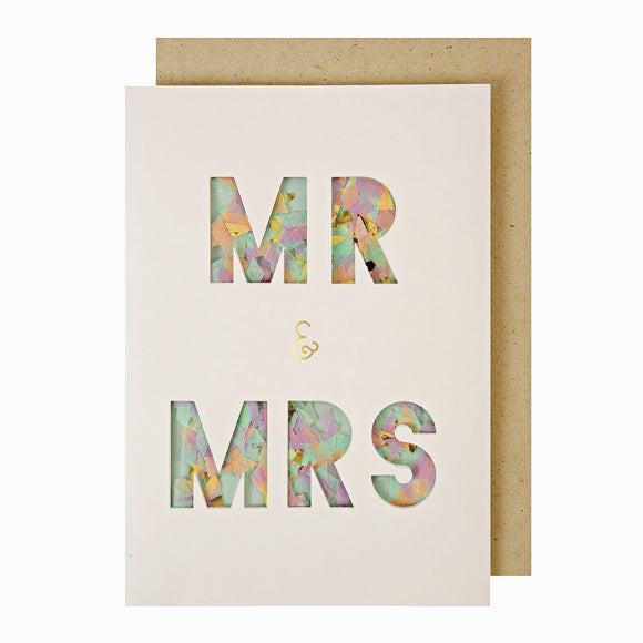 Schicke Hochzeits-Karte mit Konfetti-Ausschnitten und passendem Umschlag
