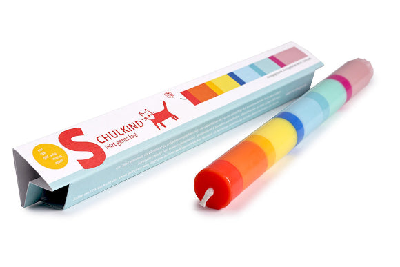 Jetzt geht’s los! Die SCHULKIND-Kerze ist das perfekte Geschenk zum Schulanfang – eine minimalistische, farbenfrohe Botschaft voller Glückwünsche und Zuversicht.
