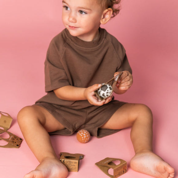Material: widerstandsfähiger Gummi, springfreudig | Verpackung: süße Maus-Geschenkbox aus Kraftpapier, 100 % recycelbar