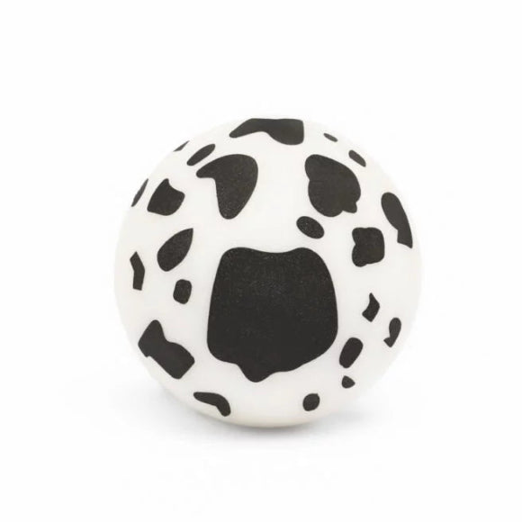 Muuuuh & hopp! Dieser springfreudige Gummiball mit coolen Kuhflecken wird zum neuen Lieblingsspielzeug. Perfekt für kleine Hände, robust für drinnen & draußen – und verpackt in einer süßen Kraftpapier-Schachtel im Tierlook. Weicher, widerstandsfähiger Gummi – hoher Bounce und ein Handliches Format: Ø 43 mm