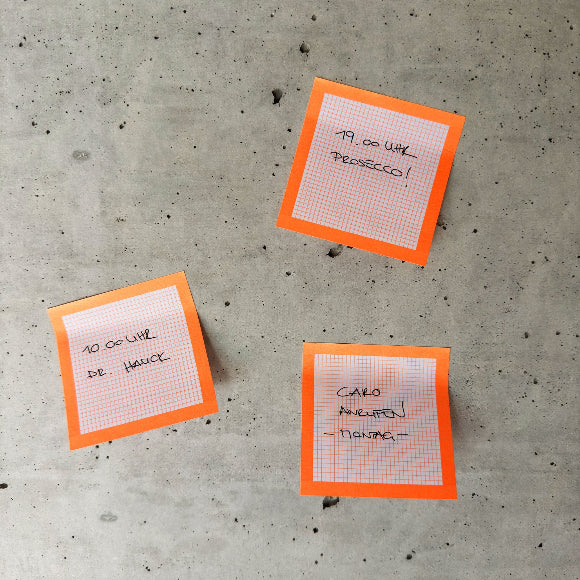 coole quadratische Haftnotizen in Neonorange. 3x50 Blatt im Set. Sichtbar, haftend, rückstandsfrei.