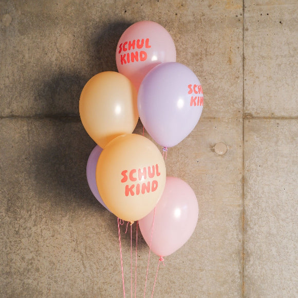Dieses 6-teilige Luftballon-Set sorgt für eine festliche Stimmung auf jeder Einschulungsfeier. Es enthält 3 bedruckte und 3 unbedruckte Luftballons in harmonischen Rosa-, Aprikose- und Fliedertönen. Die hochwertigen Ballons aus Naturkautschuk sind biologisch abbaubar und kommen in plastikfreier Verpackung.
