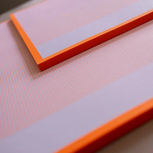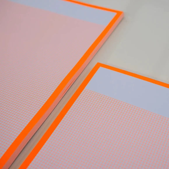 Dieser Block mit Karos in 2 mm in Neon-Orange ist ideal für Skizzen und Notizen. Ein besonderer Hingucker ist die farbige Leimkante.