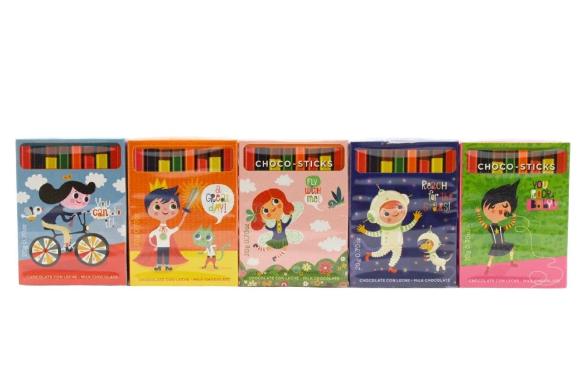 eine kleine Packung gefüllt mit bunten Mini-Stiften aus Schokolade