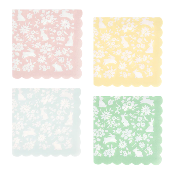 süße Häschen-Servietten klein – 16er Pack (4 Farben)