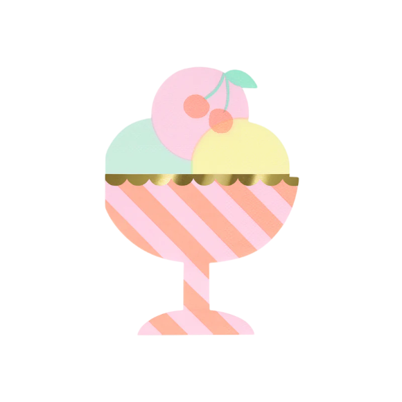 coole Servietten „Ice Cream Sundae“ – 16er Pack (mit Goldfolie)