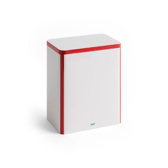 Die Tin Containers von HAY sind eine Kollektion funktionaler und dekorativer Aufbewahrungsboxen mit farbenfrohen Karomustern und einer glänzenden Oberfläche. Der Deckel und der Behälter sind nahtlos aufeinander abgestimmt, wodurch ein elegantes, nahtloses Erscheinungsbild entsteht und gleichzeitig ein luftdichter Sitz gewährleistet wird, der für die Lagerung trockener Lebensmittel geeignet ist. Der Blechbehälter ist in einer großen Auswahl an Größen, Formen und Designs erhältlich und kann dekorativ auf Regalen oder Tischen im ganzen Haus platziert werden, um verschiedene Gegenstände aufzubewahren und zu organisieren.