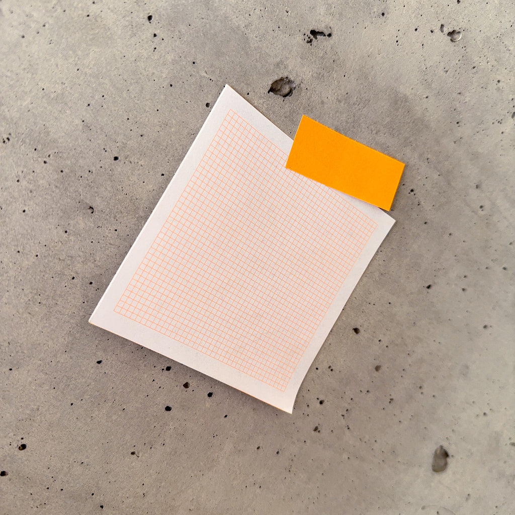 großer Notizblock mit neonorangem Karo-Muster